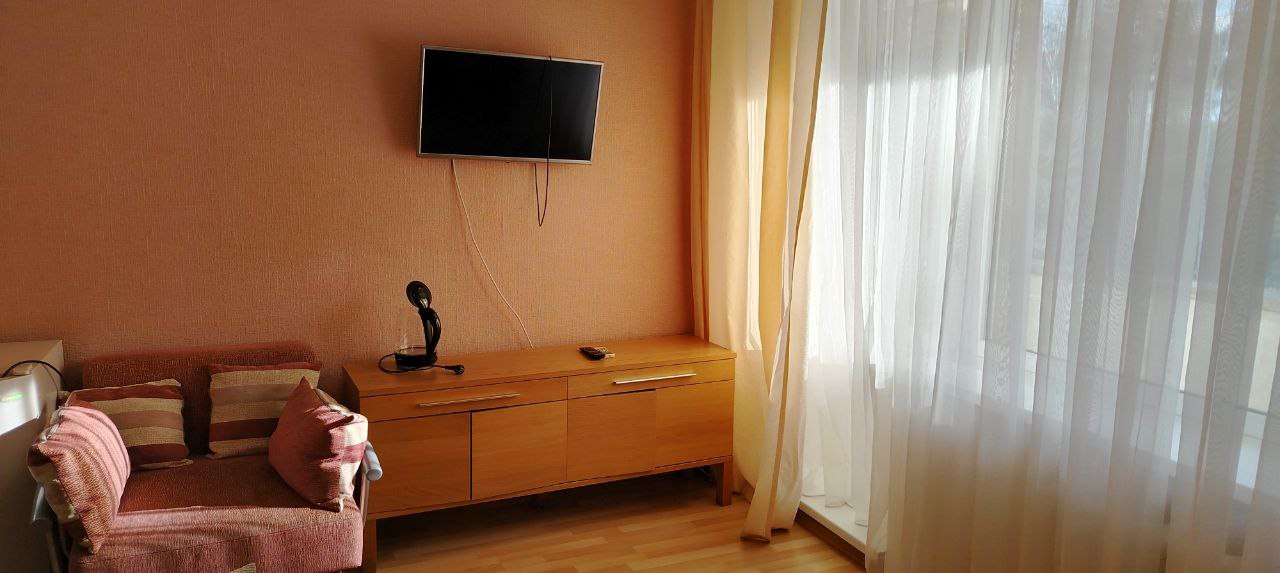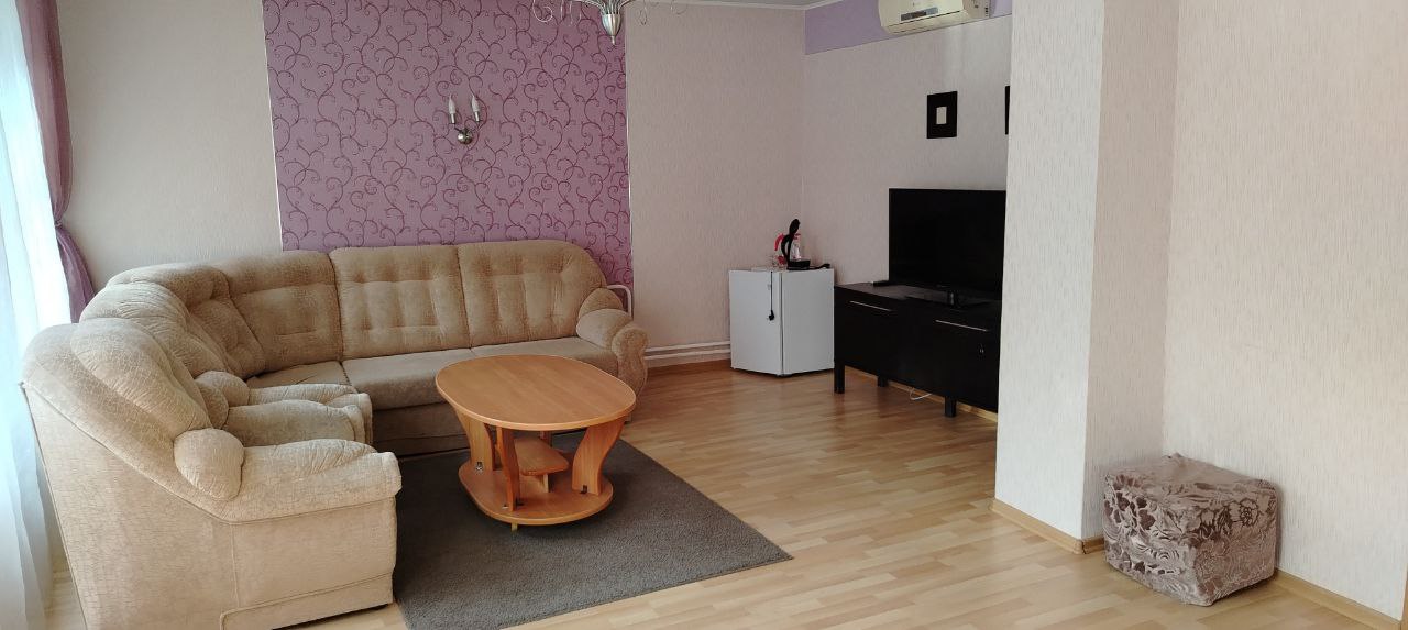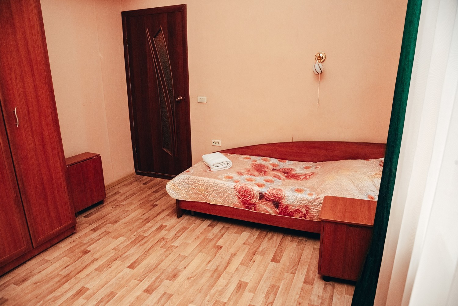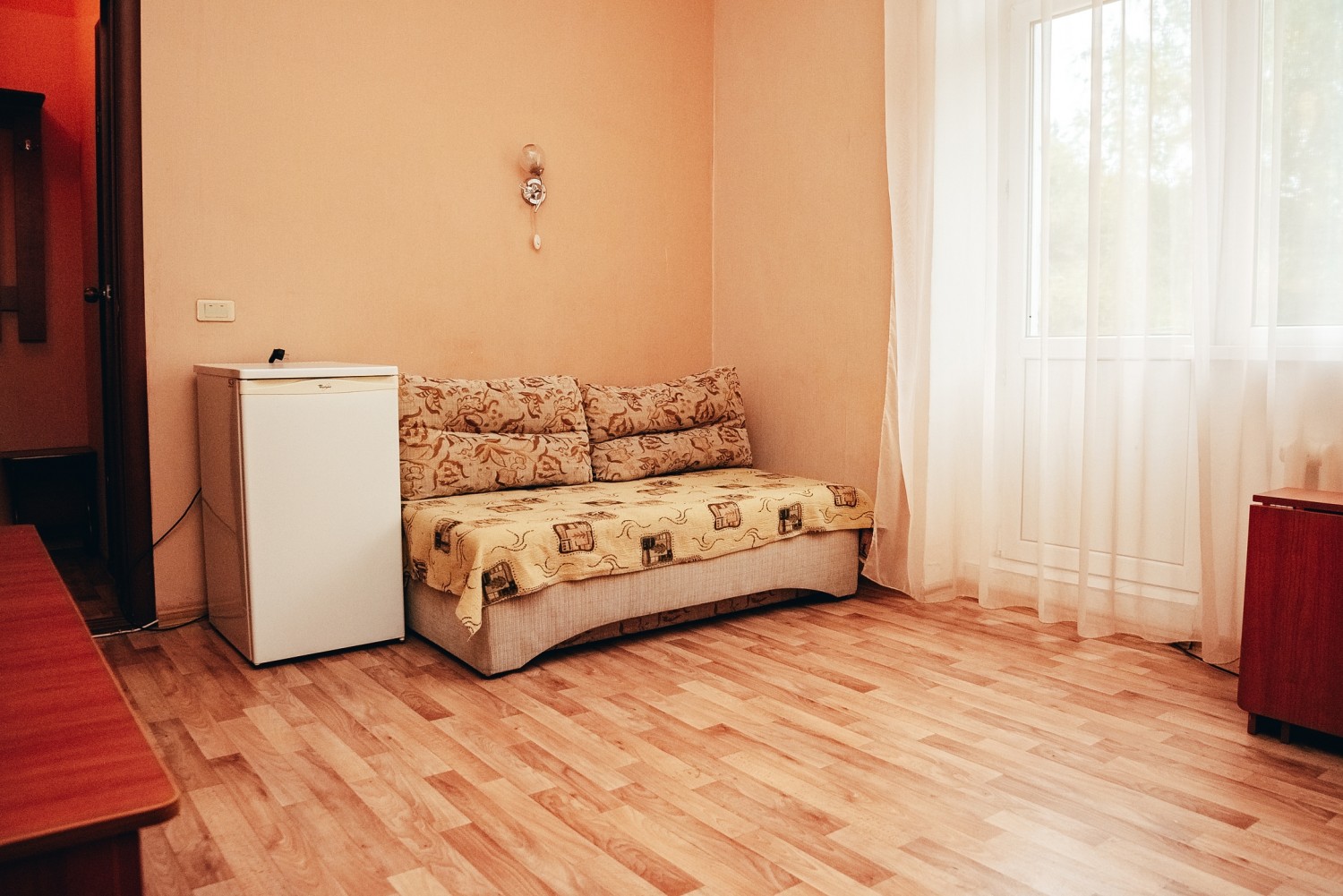 В номере: кровать, душевая кабина, сан. узел, диван, кресло, телевизор, холодильник, электрический чайник, радиоточка, сервиз.