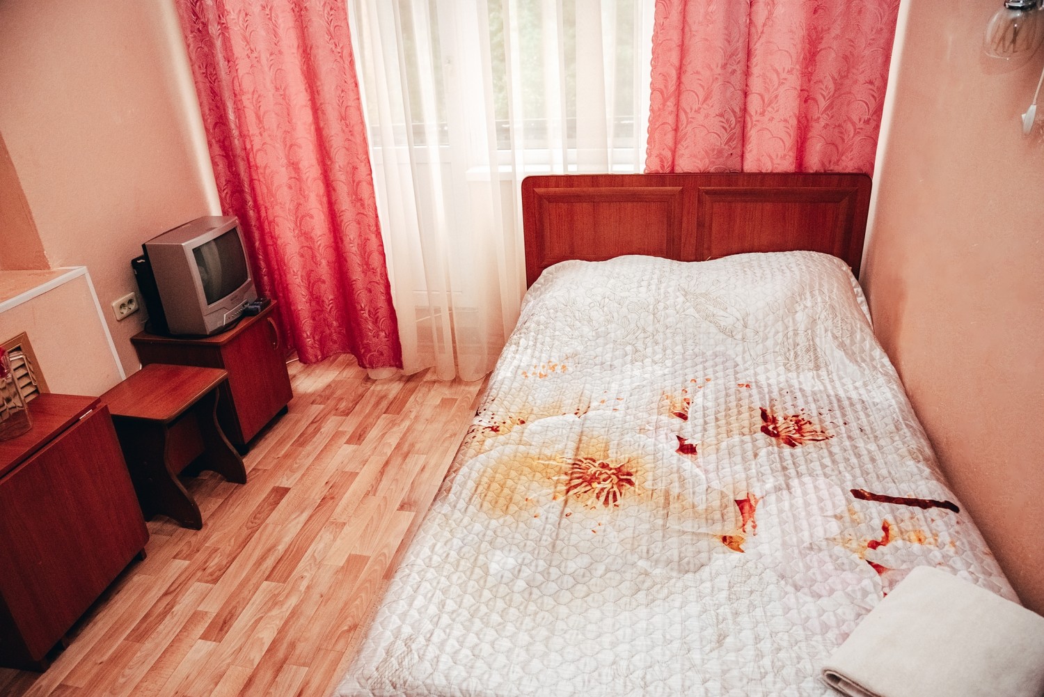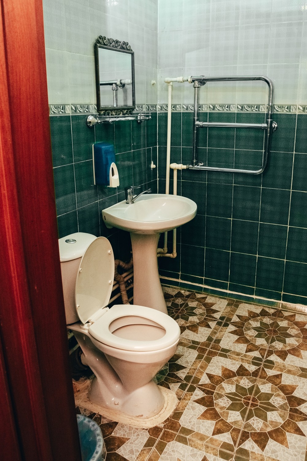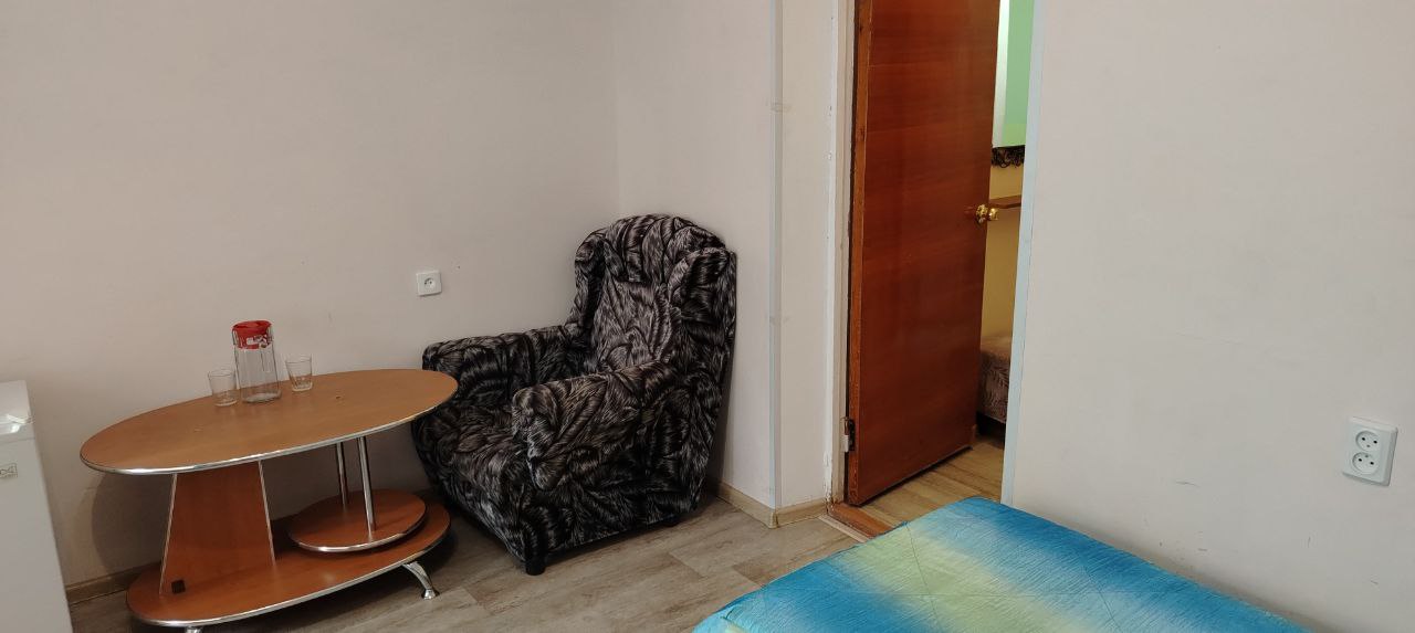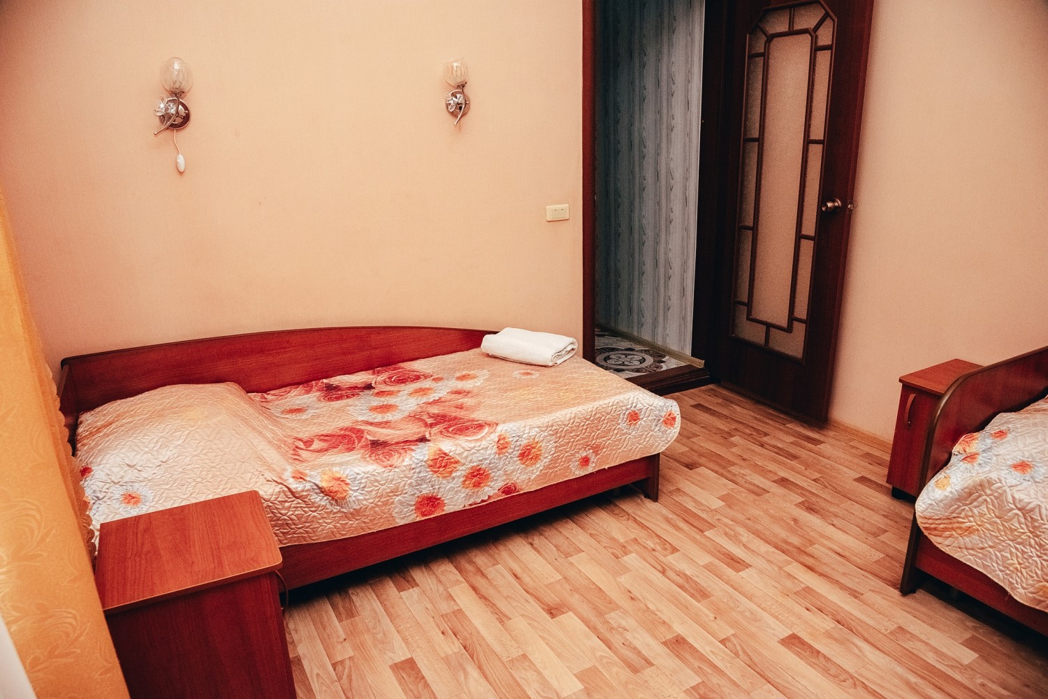 В номере: две односпальные кровати, телевизор, 2 кресла, журнальный столик, тумбочка, встроенный платяной шкаф, радиоточка, раковина для умывания. Душевая и сан. узел находятся на этаже.